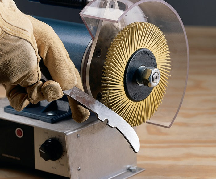Borsten aus flexiblem Kunststoff mit keramischen Schleifkörnern (Cubitron™) durchsetzt · hohe Reinigungswirkung · z. B. Schweißnahtreinigung auf Edelstahl · mit gleichbleibendem hochwertigem Finish · erzeugt eine vollkommen gratfreie Oberfläche · besonders geeignet für geformte Werkstücke · Breite 12,7 mm · Lieferung komplett mit Adapterstücken für die Reduzierung des Innendurchmessers auf 22,23 / 19 / 15,6 / 12,7 mm Ø