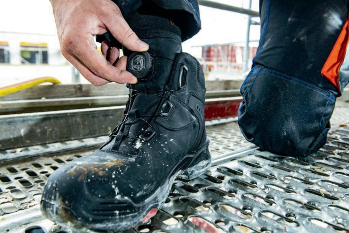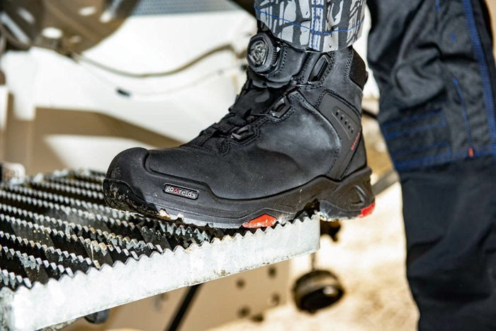 nach DIN EN ISO 20345 · S3 SRC HRO · vollnarbiges, robustes, atmungsaktives LWG-Rindleder · BOA® Verschlusssystem für einfaches Öffnen und Schließen bei optimaler Justierung der Passform · Heel-Safety-System · Baak® Stahl-Flexkappe · integriertes H-Kopplungs-Element zum fußgerechten Abknicken · durchtritthemmende nichtmetallische flexible Brandzwischensohle · Baak® go&relax System · Baak® ESD Softstep+ Einlegesohle · kurzzeitig bis 300°C belastbar · rutschhemmend, resistent gegen viele Säuren und Laugen, schnittsicher · nach DGUV 112-191 · Weite 11 auf Anfrage auch ab Gr. 38 und bis Gr. 48 lieferbar
