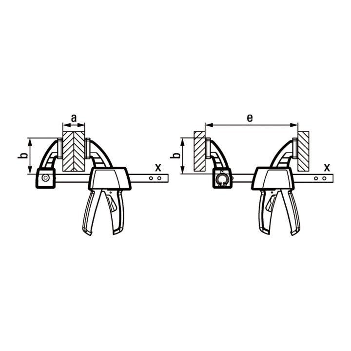 zum Spannen und Spreizen · mit bis zu 2000 N Spannkraft · dank intelligenter Lösemechanik am Oberteil werkzeuglos umsteckbar zum Spreizen · ergonomisch geformter 2-Komponenten-Kunststoffgriff hinter der Schiene