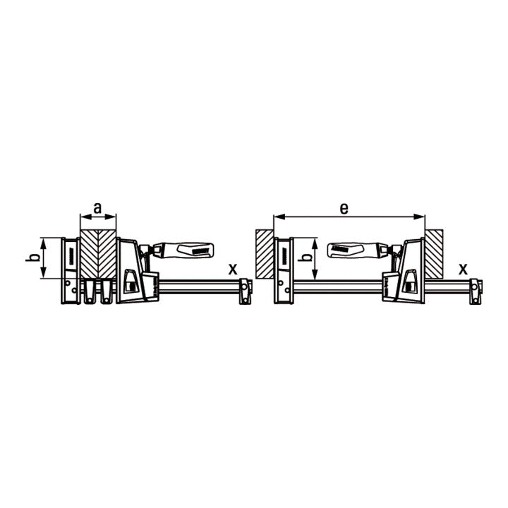 zum Spannen und Spreizen · große, parallele Spannflächen aus schlag- und bruchfestem Polyamid · Spannkraft bis 8000 N · leimabweisende, abnehmbare Schutzkappen · zusätzliche Werkstückauflagen verhindern bei voller Ausnutzung der Spanntiefe den direkten Kontakt des Werksstückes mit der Schiene · auch für exaktes Justieren von Ecken oder bei abgesetzten Kanten bestens geeignet · 2-Komponenten-Griff · Besondere Produktvorteile: · Spannkraft bis zu 8000 N · werkzeuglos umsteckbar zum Spreizen