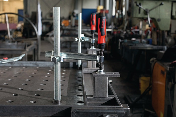 für Schweißtische mit variabler Ausladung · mit 2 K Griff · für Stahlbearbeitung