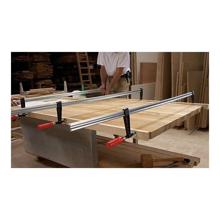 Fest- und Gleitbügel aus hochwertigem Guss · pulverbeschichtet · Hohlprofilschienen 6-fach geriffelt · glanzverzinkt · Spindel brüniert · Spannkraft bis zu 7000 N · Kunststoff-Schutzkappen (alle Schraubzwingen mit Schienenquerschnitt 35 x 11 mm ohne Kunststoff-Schutzkappen) · ab Größe 160 x 80 mm mit Rutschsicherung + werkzeuglos wechselbaren Druckplatten