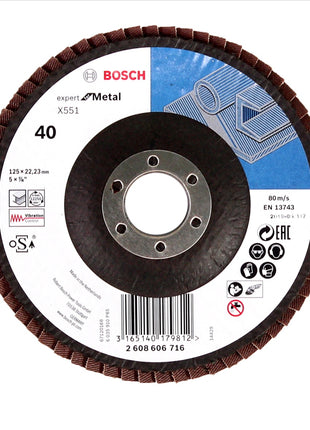 Bosch Fächerschleifscheiben X551 Expert for Metal 125mm, K40, 10 Stück ( 10x 2608606716 )