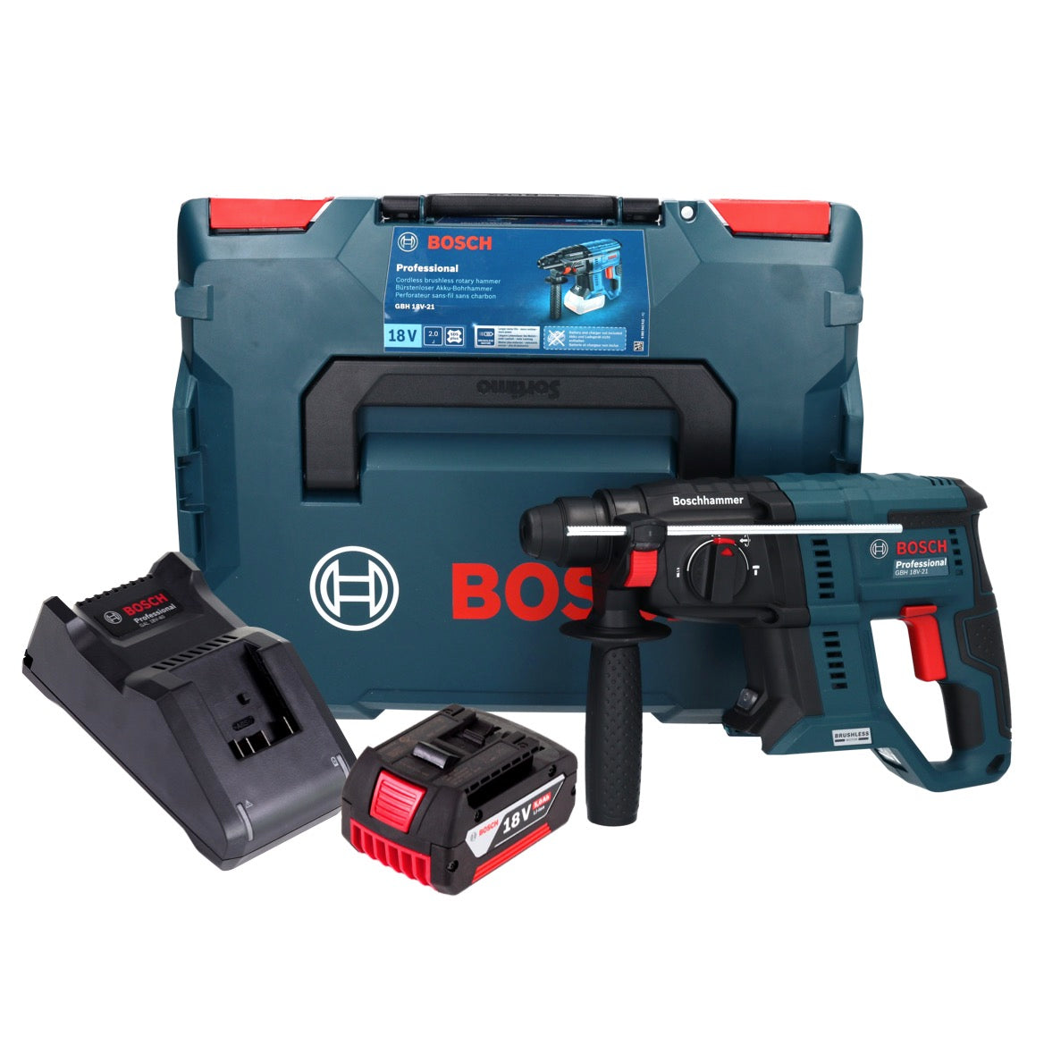 Bosch GBH 18V-21 Professional Akku Bohrhammer 18 V 2,0 J Brushless + 1x Akku 5,0 Ah + Ladegerät + L-BOXX