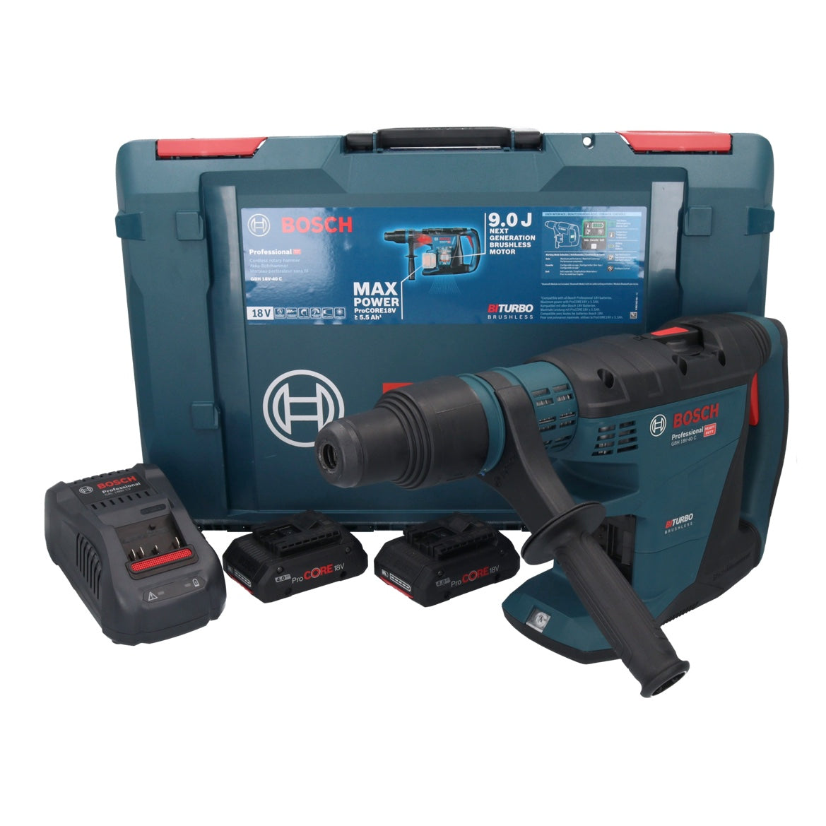 Bosch GBH 18V-40 C Professional Akku Bohrhammer 18 V 9,0 J SDS max BITURBO Brushless + 2x ProCORE Akku 4,0 Ah + Ladegerät + XL-BOXX
