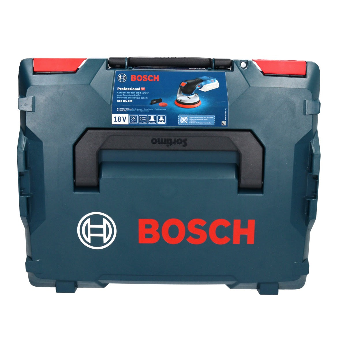 Bosch GEX 18V-125 Professional Akku Exzenterschleifer 18 V 125 mm Brushless + 1x Akku 4,0 Ah + 1x Toolbrothers TURTLE Schleifset + L-BOXX - ohne Ladegerät