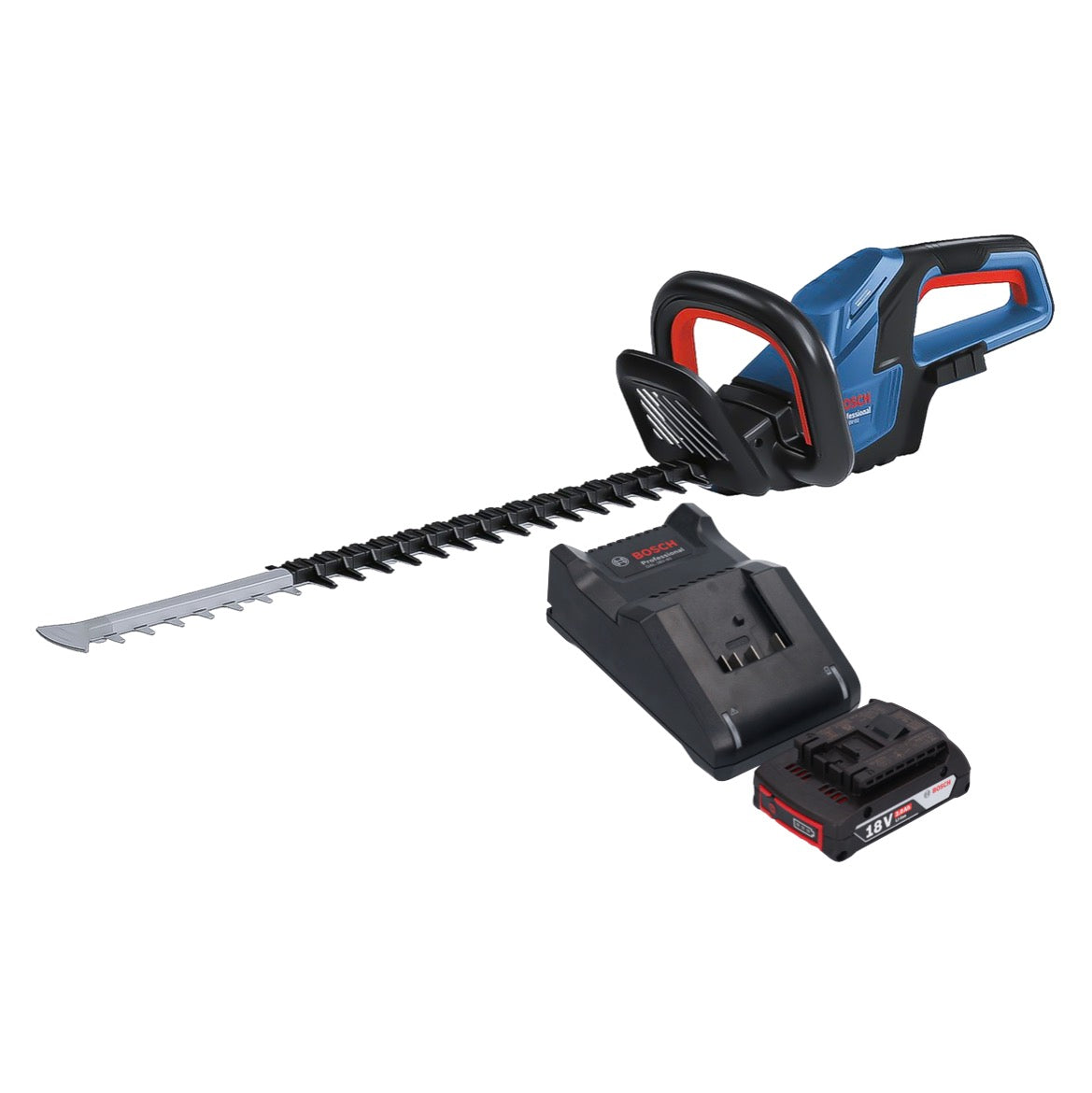 Bosch GHE 18V-60 Professional Akku Heckenschere 18 V 60 cm Brushless + 1x Akku 2,0 Ah + Ladegerät