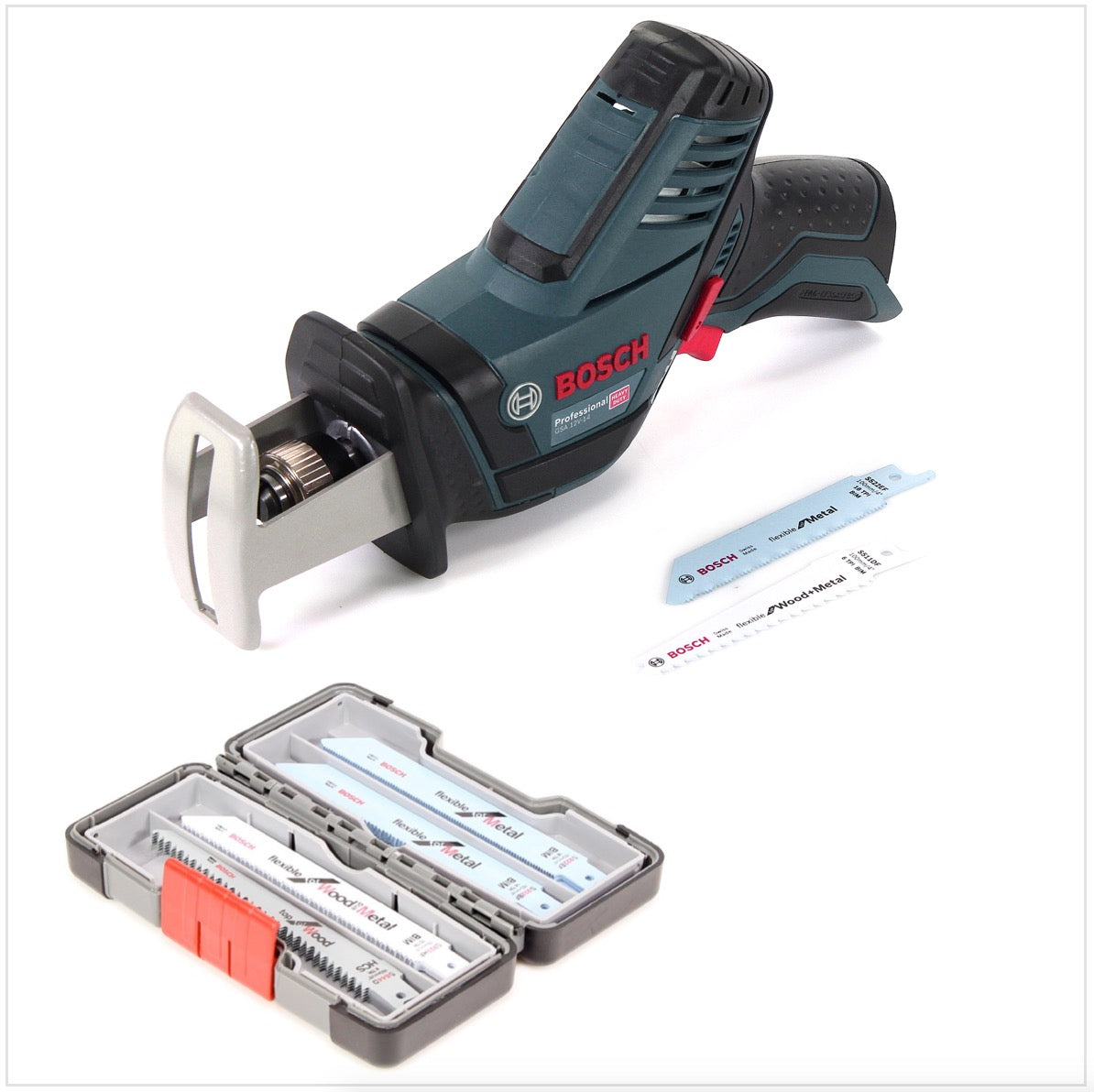 Bosch GSA 12V-14 Akku Säbelsäge 12 V + 20 tlg. Tough Box Sägeblätter - ohne Akku und Ladegerät