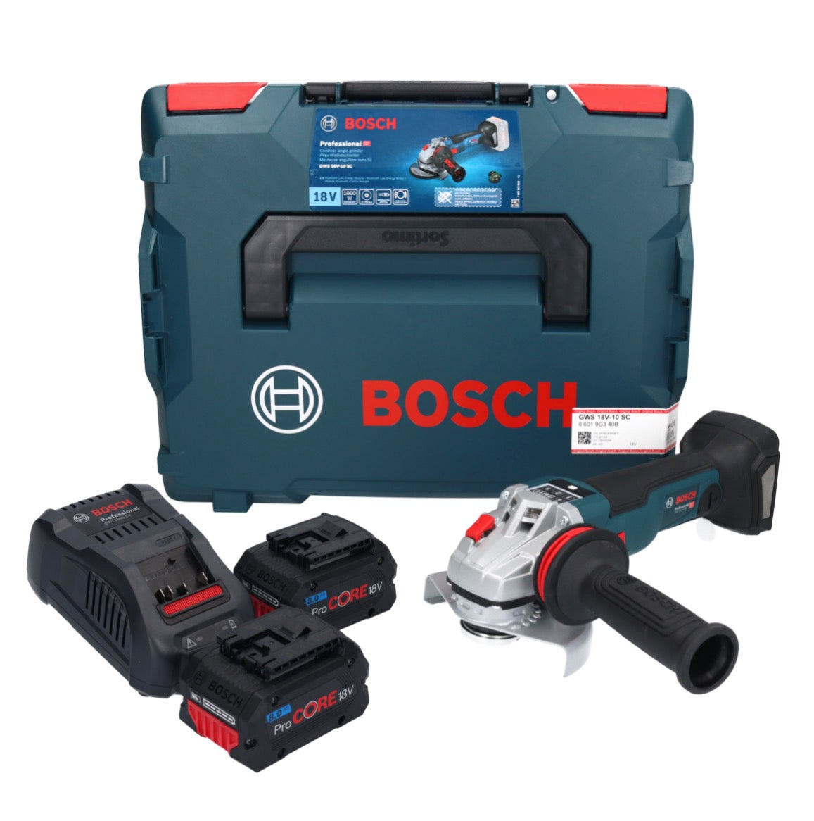Bosch GWS 18V-10 SC Akku Winkelschleifer 18 V 125 mm Brushless + 2x ProCORE Akku 8,0 Ah + Ladegerät + L-Boxx