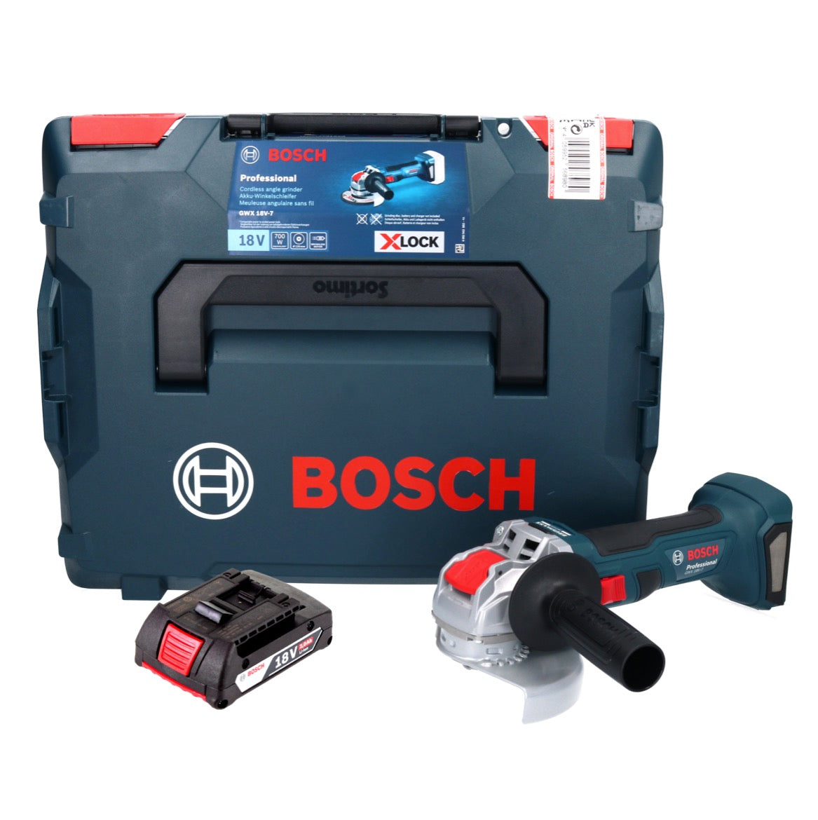 Bosch GWX 18V-7 Professional Akku Winkelschleifer 18 V 125 mm Brushless X-LOCK + 1x Akku 2,0 Ah + L-Boxx - ohne Ladegerät
