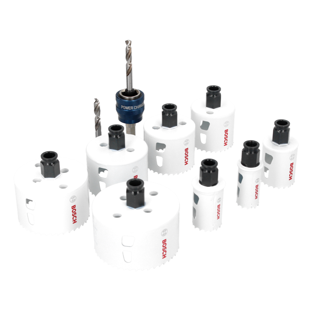 Die Bosch Progressor for Wood & Metal Lochsägen besitzen eine 8 prozentige Kobaldlegierung und sind aus Bi-Metall HSS gefertigt. Somit ist eine extreme Widerstandsfähigkeit und Langlebigkeit gegeben. Mit den 8 Lochsägen ( 25 / 32 / 40 / 54 / 60 / 68 / 76 / 86 Ø mm ) können Sie verschiedenste Materialien wie Weichholz, Trockenbauwände, Kunststoffe, Nichteisenmetalle sowie Rohre und Profile aus Metall bearbeitet werden. Dank des Power Change Plus Adapters ist das Set für alle Akku- und Netzbohrschrauber, Dreh- Schlagbohrer und Bohrhämmer geeignet.