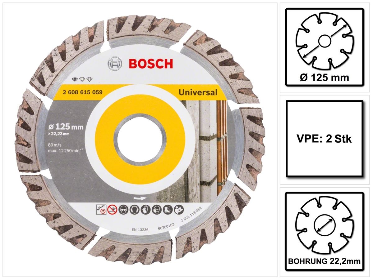 Bosch Standard for Universal Diamanttrennscheibe 125 x 22,23 mm 2 Stk. ( 2x 2608615059 ) für Beton, Stahl-Beton, Back-, Kalk- und Sand-Stein