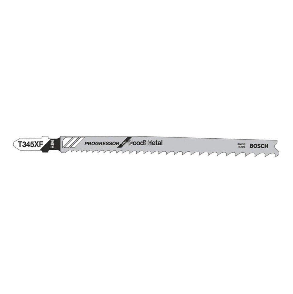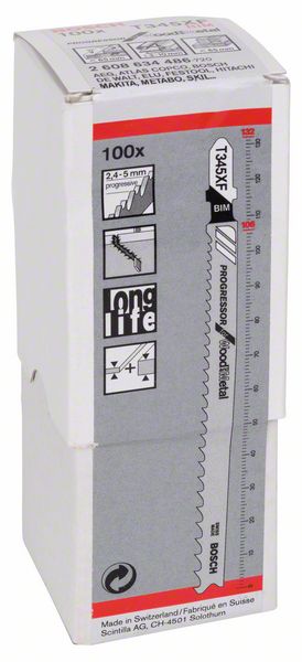 Bosch T 345 XF Stichsägeblätter Progressor for Wood and Metal für Metall- und Holzarbeiten - 100 Stück, gefräste Zähne, für Stichsägen mit T-Schaft-Aufnahme