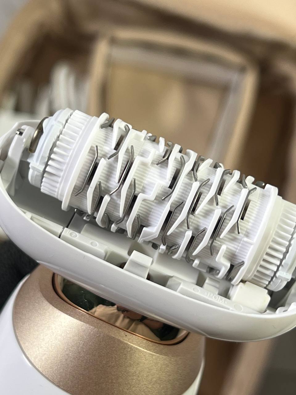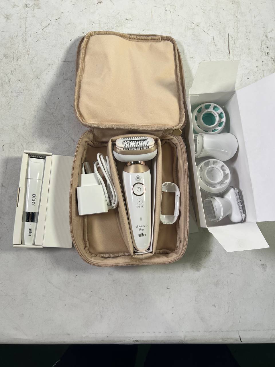 BRAUN Silk-épil 9 Flex 9-100 Beauty-Set Epilierer Damen / Haarentferner + FaceSpa Gesichtsreinigungsbürste + 9 Aufsätze + Tasche weiß / gold - Neuwertig
