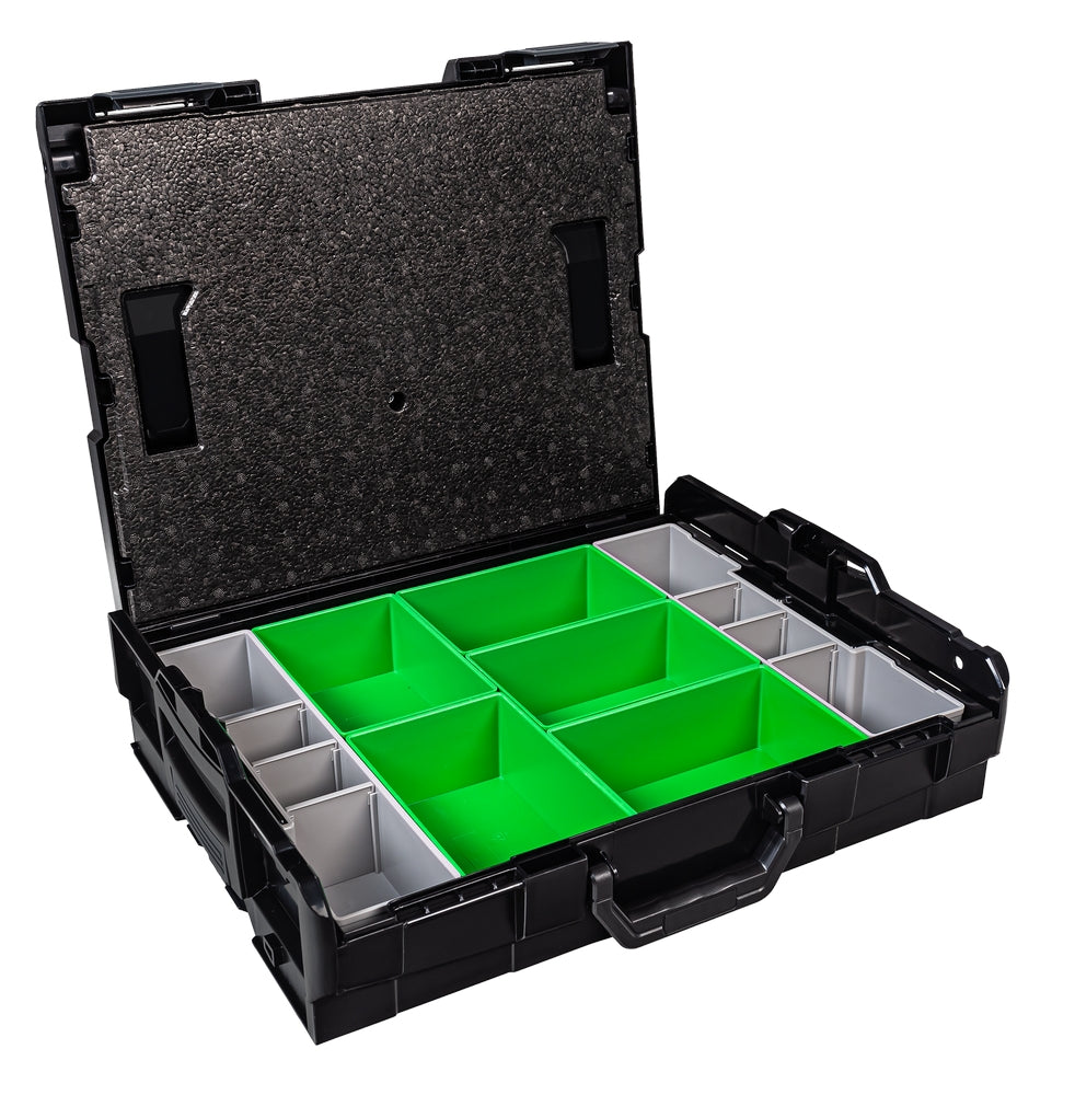 Mit dem Insetboxenset D3 LB 102 behalten Sie Ihre Kleinteile immer perfekt geordnet im Blick. Ganz egal, ob Sie diese in Ihrer Werkstatt, in Verbindung mit dem L-BOXX- oder ProClick-System verwenden - sie lassen sich überall formschlüssig einsetzen. Das Set besteht aus 2 Insetboxen U3 in grau, inklusive 6 Trennwänden, und 5 Insetboxen D3 in grün.