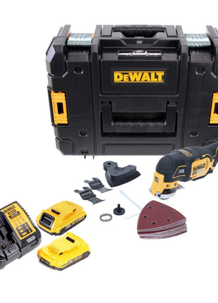 DeWalt DCS 355 D2 Akku Oszillierer Multitool 18 V Brushless + 2x Akku 2,0 Ah + Ladegerät + Zubehör + TSTAK