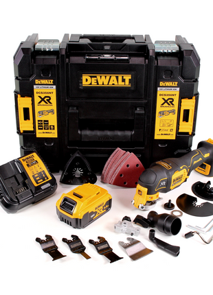 DeWalt DCS 356 P1 Akku Multitool 18V Brushless + 35tlg. Zubehör + 1x Akku 5,0 Ah + Ladegerät + TSTAK