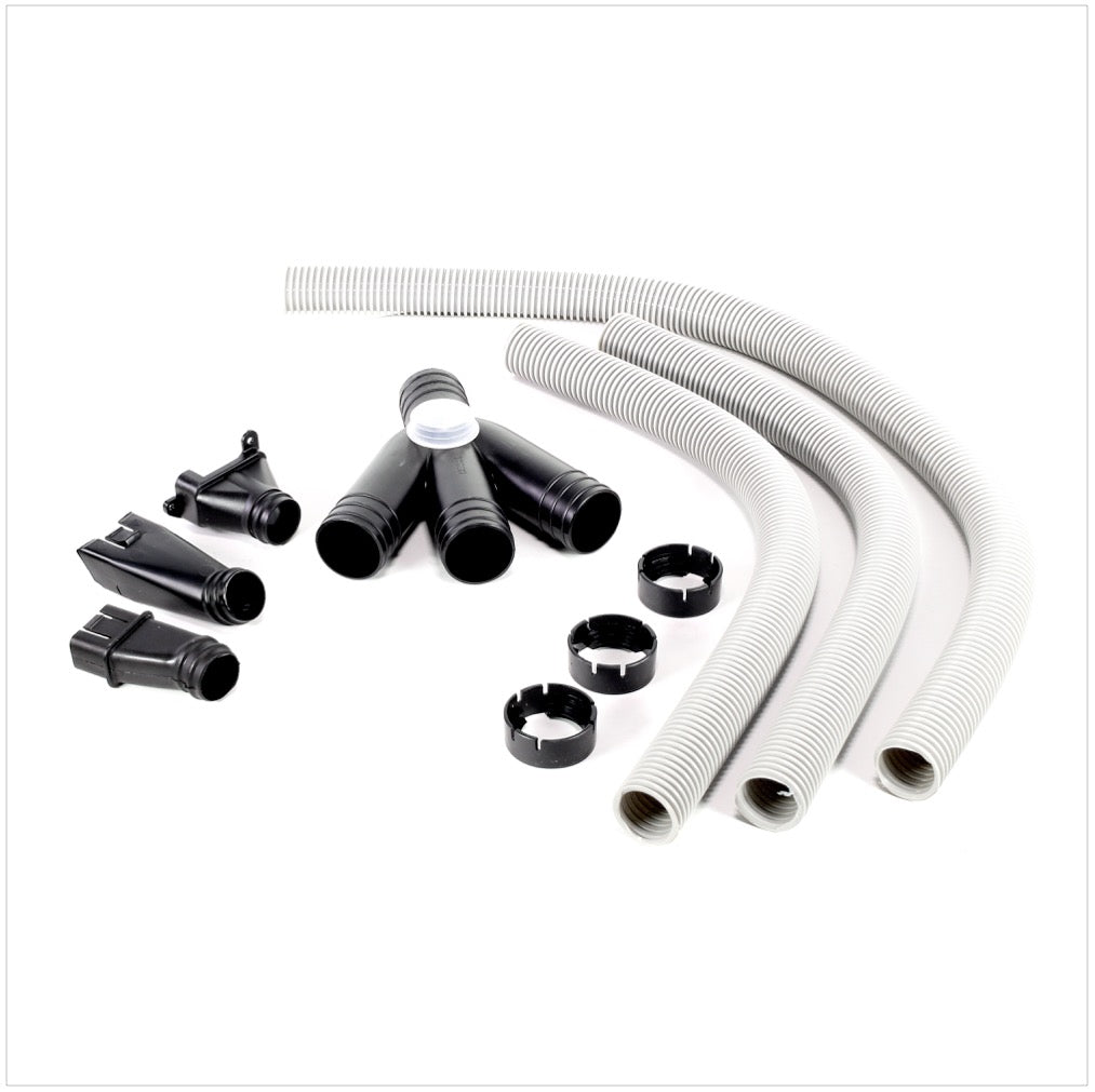 Das DeWalt DE 7778 Absaugset eignet sich bestens um die Staub- und Spanentwicklung bei Kappsägen, Gehrungssägen sowie Paneelsägen mit dem Satubsauger abzuleiten und zu entfernen.