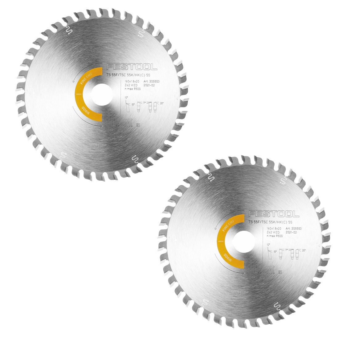 Festool 2x Kreissägeblatt Wood Fine Cut HW 160 x 1,8 x 20 mm WD42 ( 2x 205553 ) für Tauchsägen TS 55 F, TSC 55 K & Handkreissägen HK 55, HKC 55