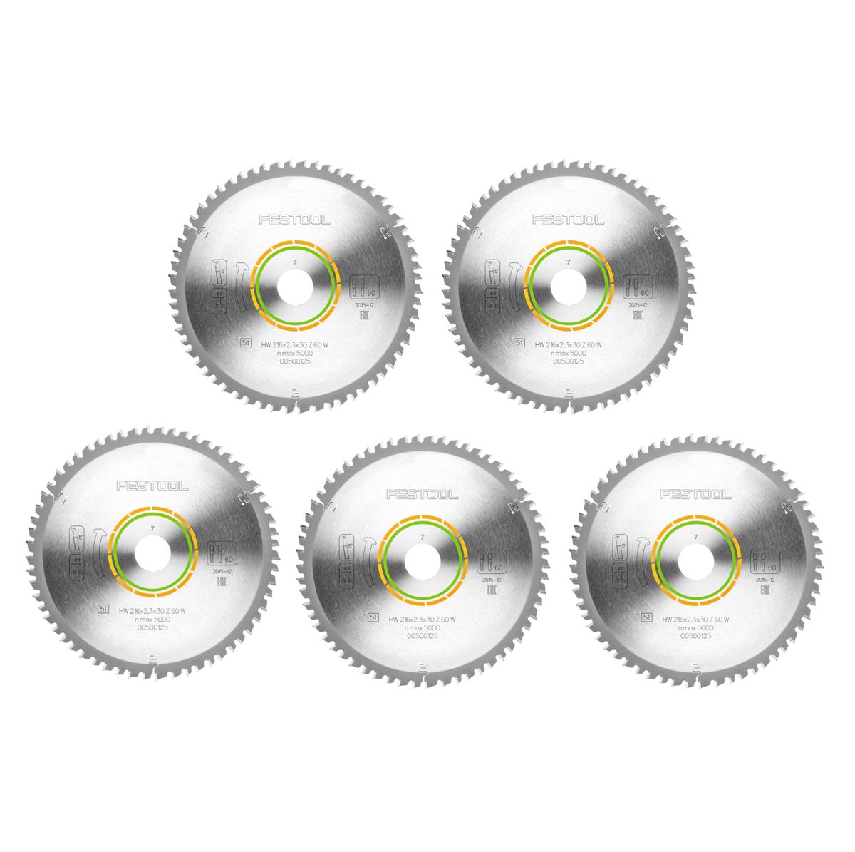 Festool 5x Feinzahn Kreissägeblatt HW 216 x 2,3 x 30 mm W60 216 mm 60 Zähne ( 5x 500125 )