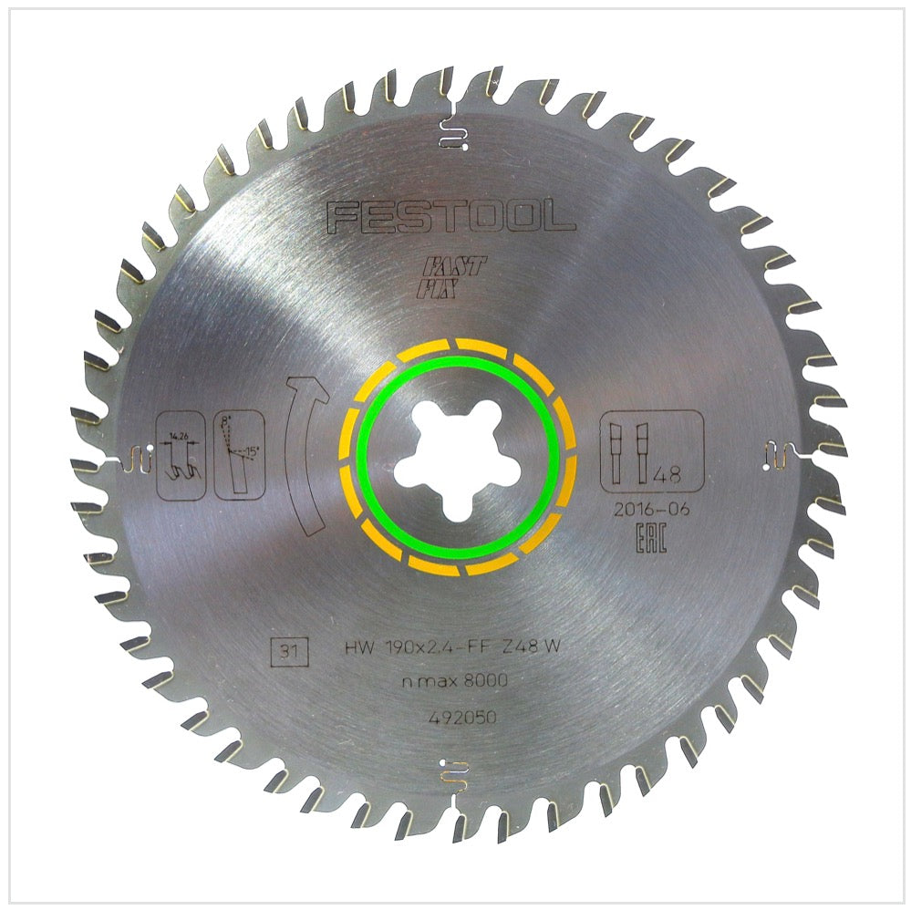 Festool Feinzahn Kreissägeblatt HW 190 x 2,4 mm xFF W48 190 mm 48 Zähne FastFix ( 492050 )