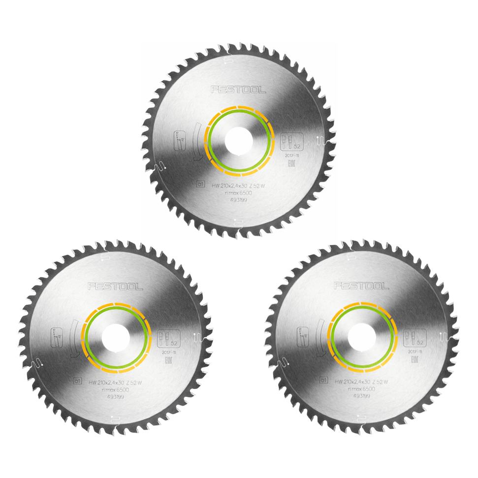 - 3x Festool Feinzahn Kreissägeblatt 210 x 30 x 2,4 mm W52 210 mm 52 Zähne ( 493199 )