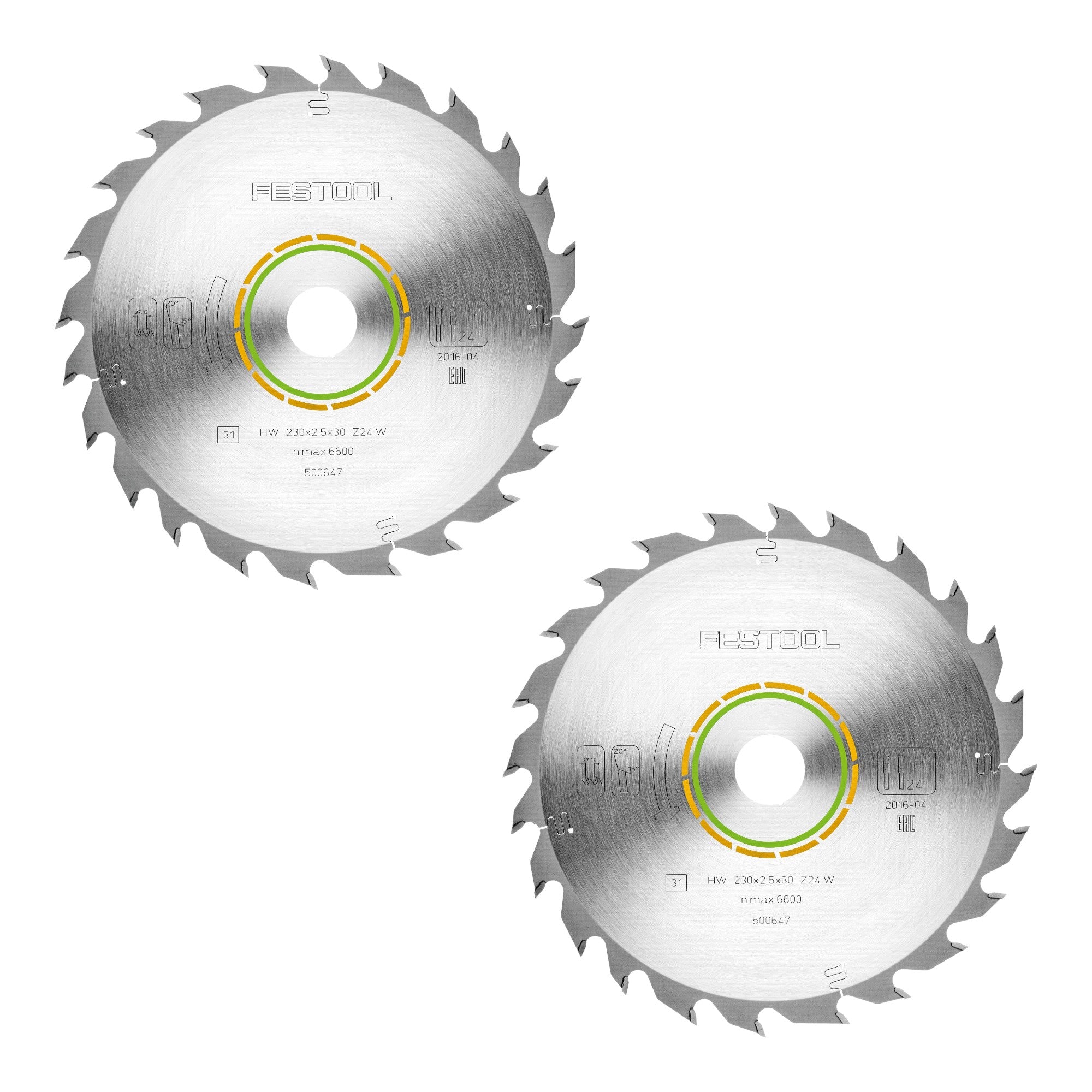 Festool HW 230x2,5x30 W24 Kreissägeblatt WOOD STANDARD 2 Stk. ( 2x 500647 ) 230 x 2,5 x 30 mm 24 Zähne für alle Holzwerkstoffe, Baustoffplatten, weiche Kunststoffe, grober Schnitt
