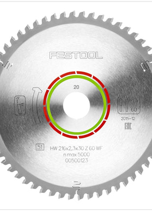 Festool Spezial Kreissägeblatt HW 216 x 30 x 2,3 mm WZ/FA60 216 mm 60 Zähne ( 500123 )