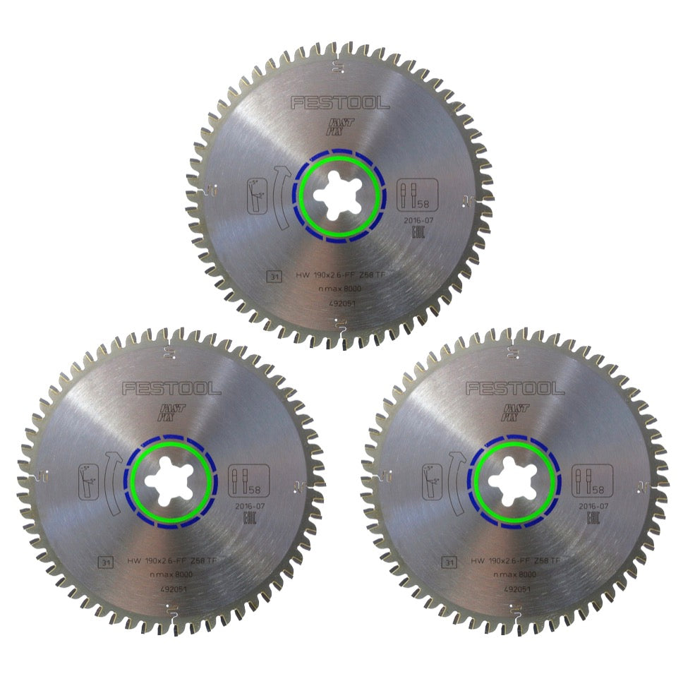 Festool Spezial Kreissägeblatt Set TF58 3x 190 x 2,6 mm 190 mm ( 3x 492051 ) 58 Zähne