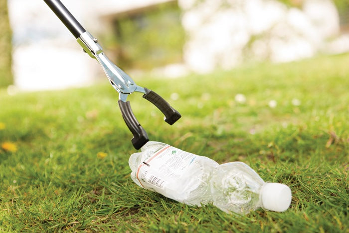 zum Aufsammeln von Müll und Abfall · Greifer sind rutschhemmend kunststoffumspritzt · eloxiertes Aluminiumrohr mit innen liegender Mechanik · verzinkter Kopf mit verclinchten Schalen · Greiferöffnung 10,5 cm