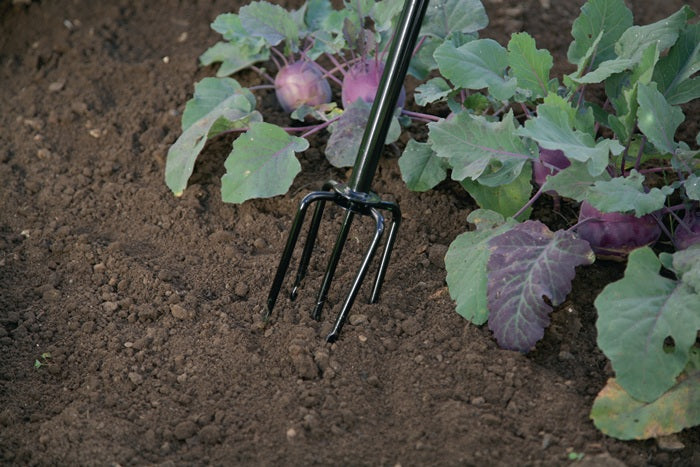 5 Zinken · pulverbeschichtet · mit Kunststoffgriffen · Stahlstiel · Gesamtlänge: ca. 920 mm · Maße: 950 x 340 x 95 mm · Gewicht: 1,3 kg