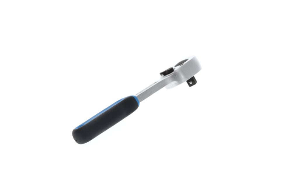 6,3 mm (1/4 ″)-Vierkantantrieb · CV-Stahl · mit 2-Komponentengriff · verchromt · Ratschensperre in Mittelstellung · Rückschwenkwinkel 15° 24 Zähne DIN 3122 / ISO 3315