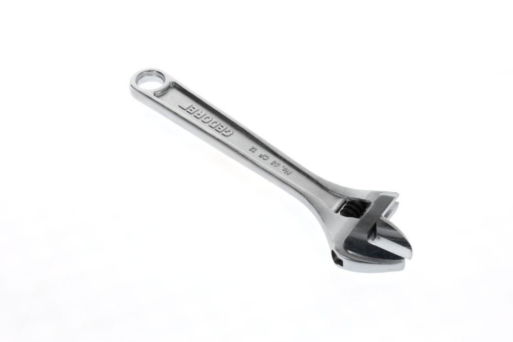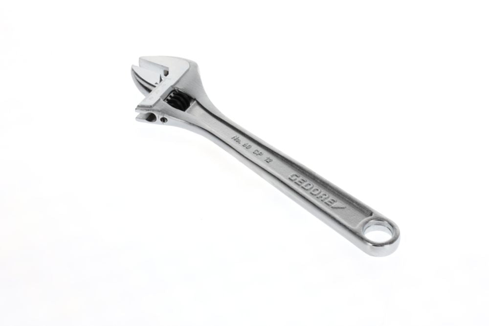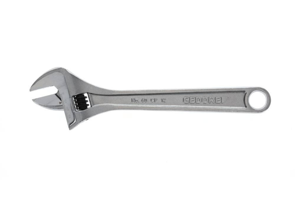 verstellbar · CV-Stahl · verchromt · Kopf poliert · schwedisches Modell · Rolle mit Linksgang · Maulstellung 15° · mit Einstell-/Messskala auf dem Schlüsselkopf · ISO 6787