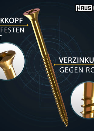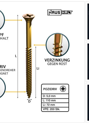 HausHalt Universal Holzbauschraube Holzschraube 5,0 x 110 mm PZ2 200 Stk. ( 2x 000051371184 ) gelb verzinkt Kreuzschlitz Pozidriv Senkkopf Teilgewinde