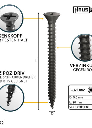 HausHalt Universal Holzbauschraube Holzschraube 5,0 x 20 mm PZ2 2000 Stk. ( 4x 000051371187 ) silber verzinkt Kreuzschlitz Pozidriv Senkkopf Vollgewinde