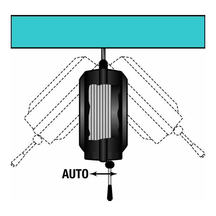 automatischer Schlauchaufroller · Schlauchstopp an jedem Punkt · gebremste Aufwicklung · geeignet für Druckluft und Wasser · Hybrid Polymer-Schlauch, schwarz · Spezial-Kunststoffgehäuse mit schwenkbarem Haltebügel · erfüllt alle einschlägigen Bestimmungen der EG-Richtlinie Maschinen 2006/42/EG · Temperaturbereich: -40 °C bis 60 °C · Luftanschlüsse 3/8″ Außengewinde