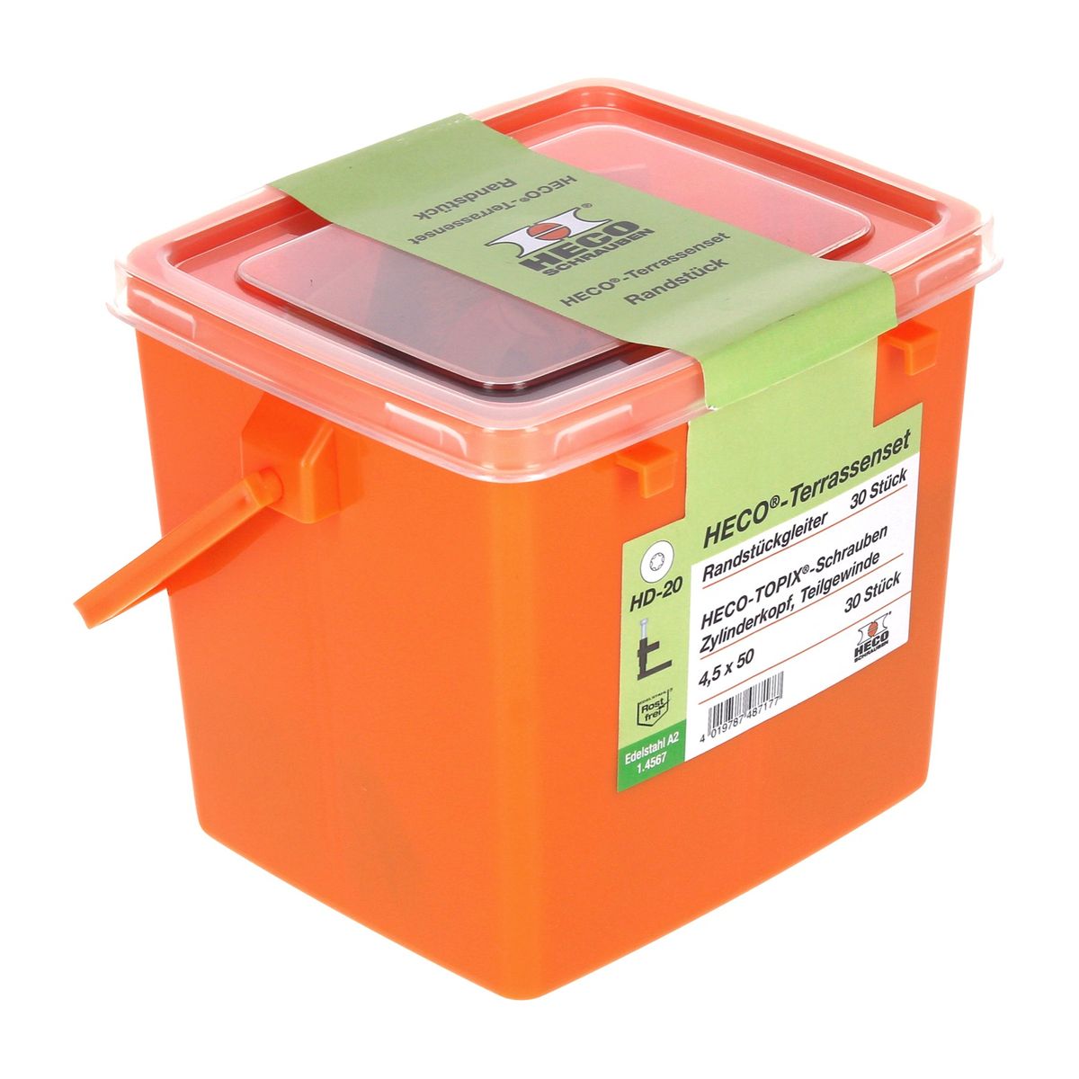 HECO Terrassengleiterset Randstück 30 tlg. ( 48717 ) mit HECO TOPIX 4,5 x 50 mm HD 20 Schrauben Set in Kunststoffbox