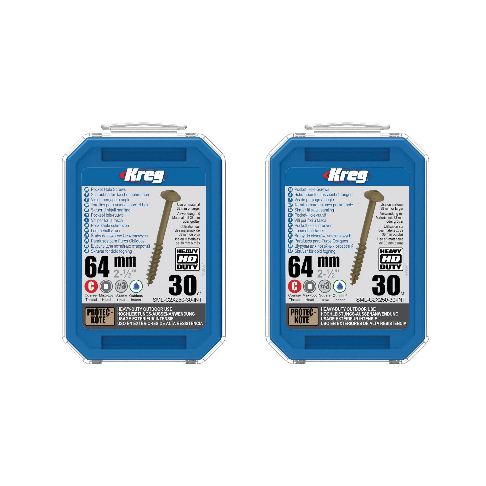 Kreg 2x HD Protec-Kote Maxi-Loc Taschenlochschrauben 64 mm ( 2x SML-C2X250-30-INT ) Grobgewinde 60 Stück