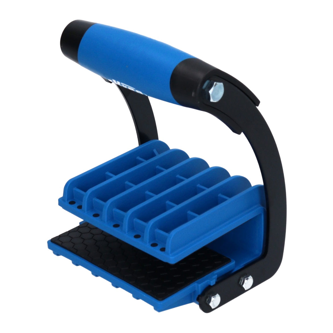 Die Firma Kreg bietet mit dem KMA300 einen praktischen Plattenträger, mit dem es problemlos möglich ist große Platten oder Sperrholz mit einer Größe von bis zu 120 x 240 cm unkompliziert zu tragen. Das Holz lässt sich ganz einfach einspannen und der Plattenträger passt sich dabei automatisch der Materialdicke an. Durch die mit Kreg GripMaxx beschichtetet Pads wird ein sicherer Halt gewährleistet ohne das Material zu beschädigen oder Abdrücke zu hinterlassen. Durch das Anheben des Griffes wird der Plattenträger automatisch zusammengedrückt und die Polster halten das Material. Hierbei schneidet der Griff, durch seine gute Polsterung nicht in die Hand. Die Firma Kreg ist ein führender Hersteller für Werkzeuge zur Herstellung hochwertiger Möbel, der sich vor allem durch seine lange Tradition und seine hohe Verarbeitungsqualität auszeichnet.