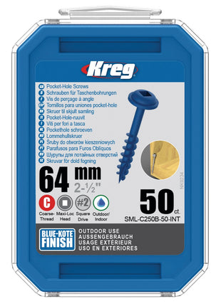KREG Pocket-Hole Linsenkopfschraube 64 mm 50 Stk. outdoor ( SML-C250B-50 ) Vierkantantrieb Teilgewinde Grobgewinde selbstschneidend gebläut