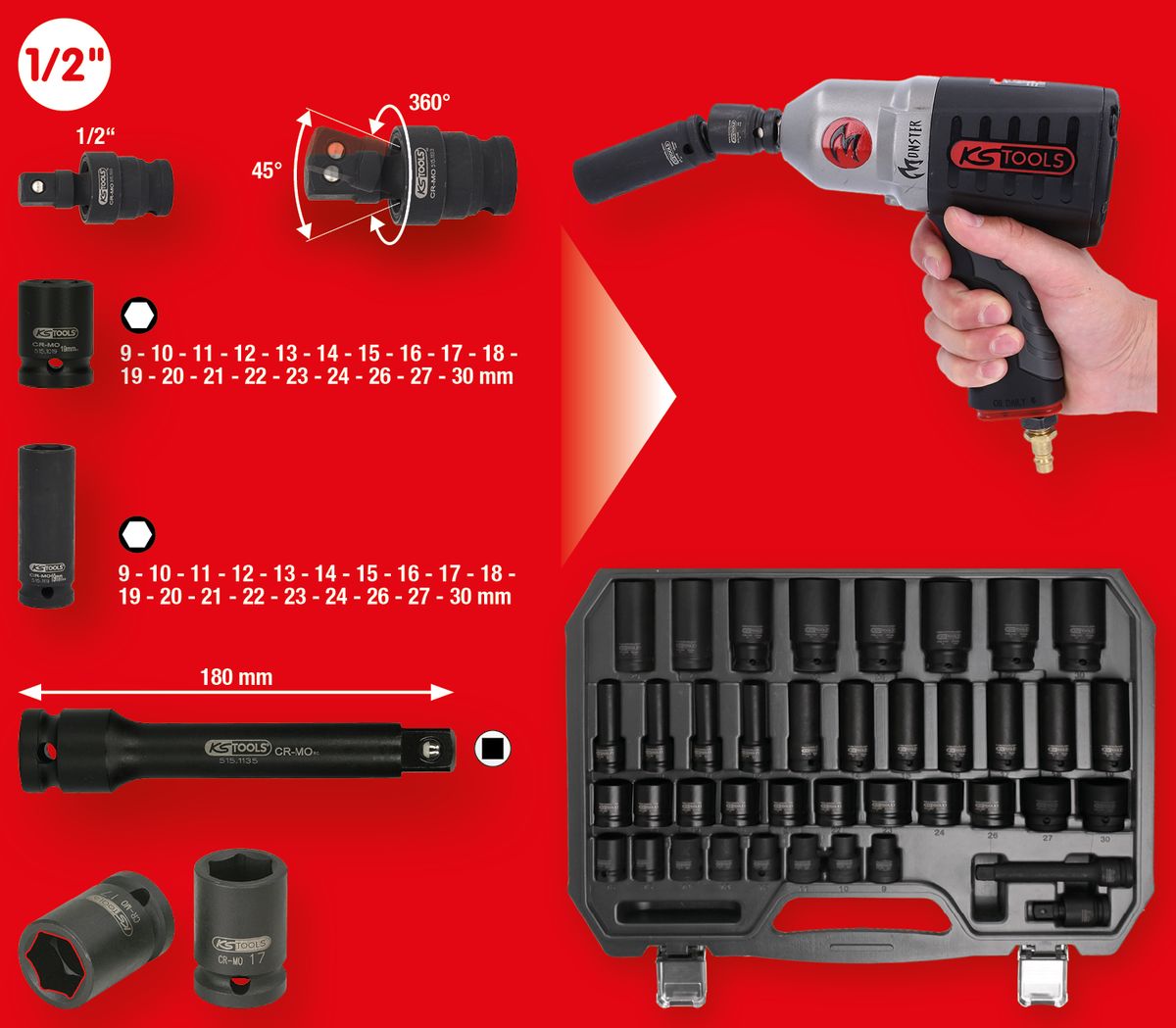 1/2" Sechskant-Kraft-Stecknuss-Satz, 40-tlg · Sechskant-Kraft-Stecknuss-Satz