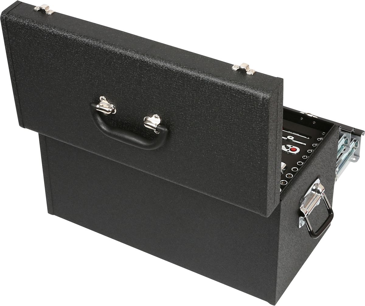 • in stabiler Stahlblech-Werkzeugtruhe