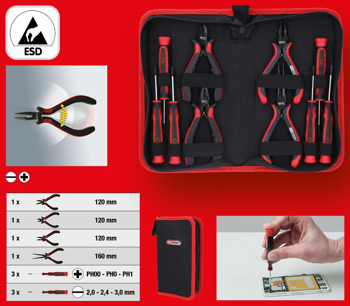 • inklusive Feinmechanik-Schraubendrehern und Zangen