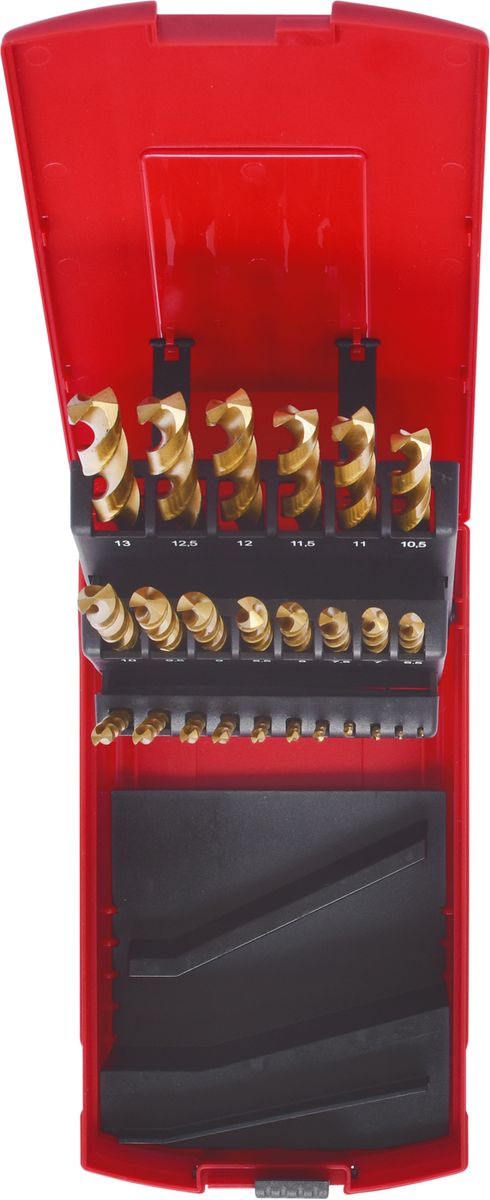 HSS TiN Spiralbohrer-Satz, Kunststoffkassette 25-tlg 1-13mm · HSS TiN Spiralbohrer-Satz in Kunststoffkassette