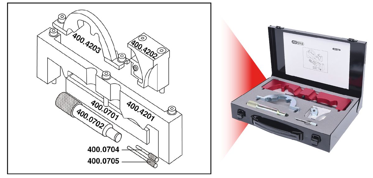 KS TOOLS Motoreinstell-Werkzeug-Satz für GM / Opel, 7-tlg ( 400.4200 )