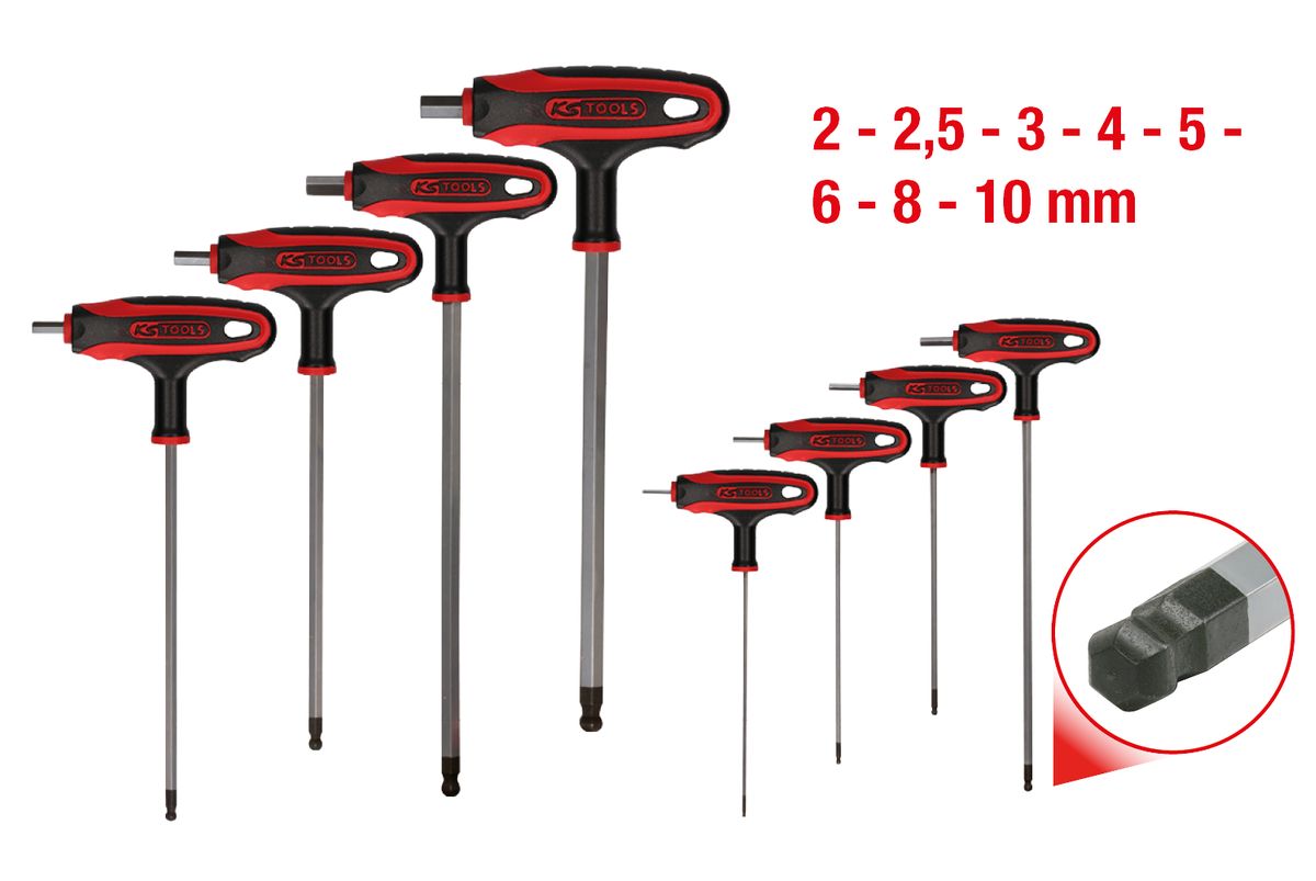 KS TOOLS T-Griff-Innensechskant-Kugelkopf-Schlüssel-Satz, 8-tlg ( 151.8155 )