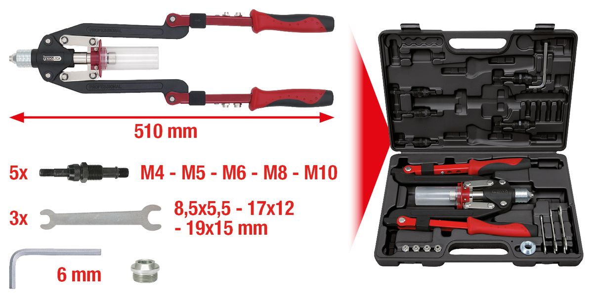 • geeignet für Blindnieten, Blindnietmuttern und Hohlraum-Metalldübel