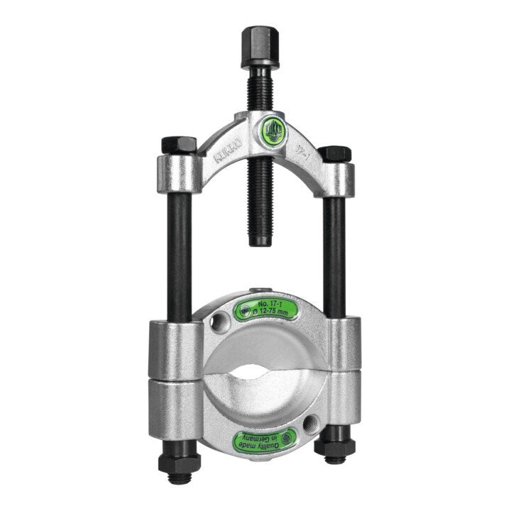 Schnellspann-Druckspindel · Qualitäts-Werkzeugstahl · handliche Ausführung, da die Trennbacken durch eine Druckspindel schnell und zentrisch gespannt werden · Anwendung: zum Abziehen von Kugellagern, Rollenlagern, Innenringen und anderen bündig aufsitzenden Teilen, insbesondere für KFZ-, Landwirtschaft- und Industrie-Mechaniker