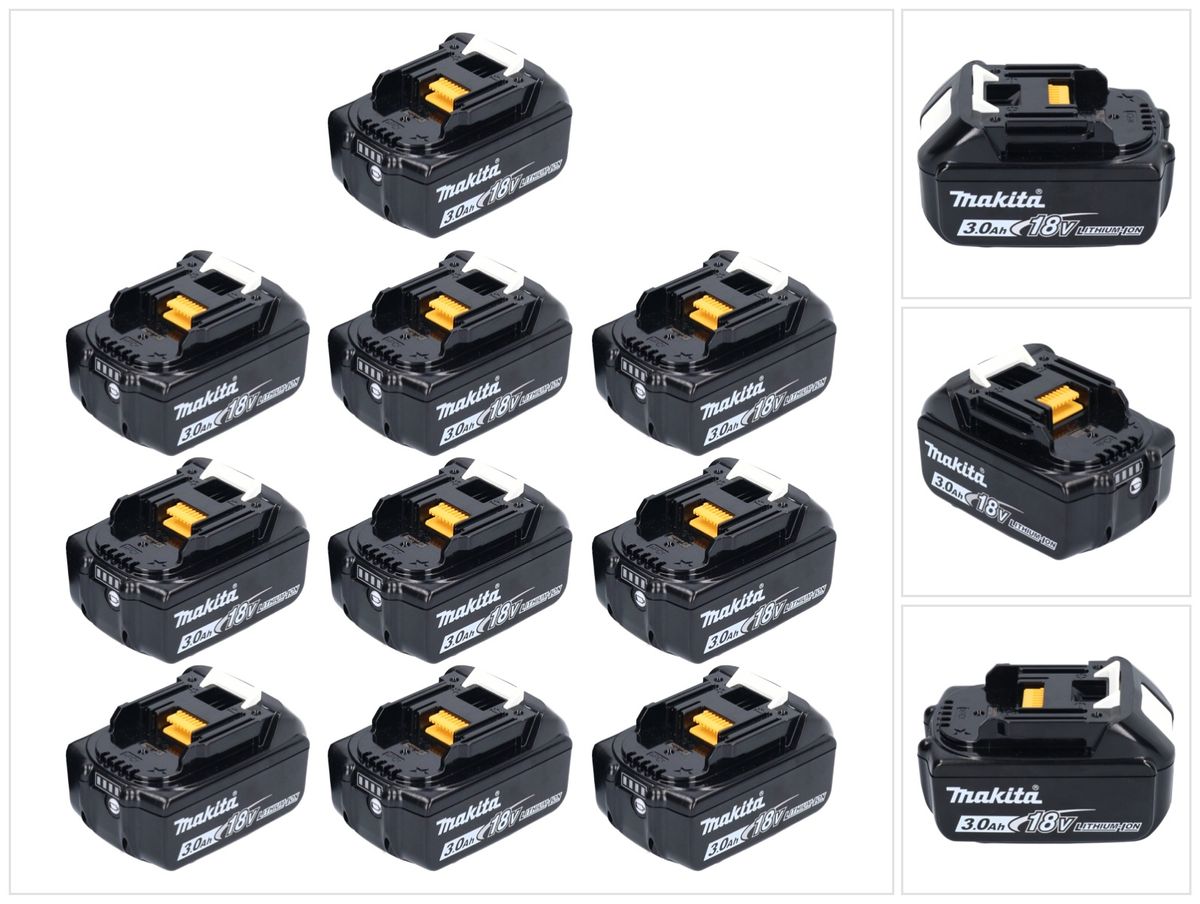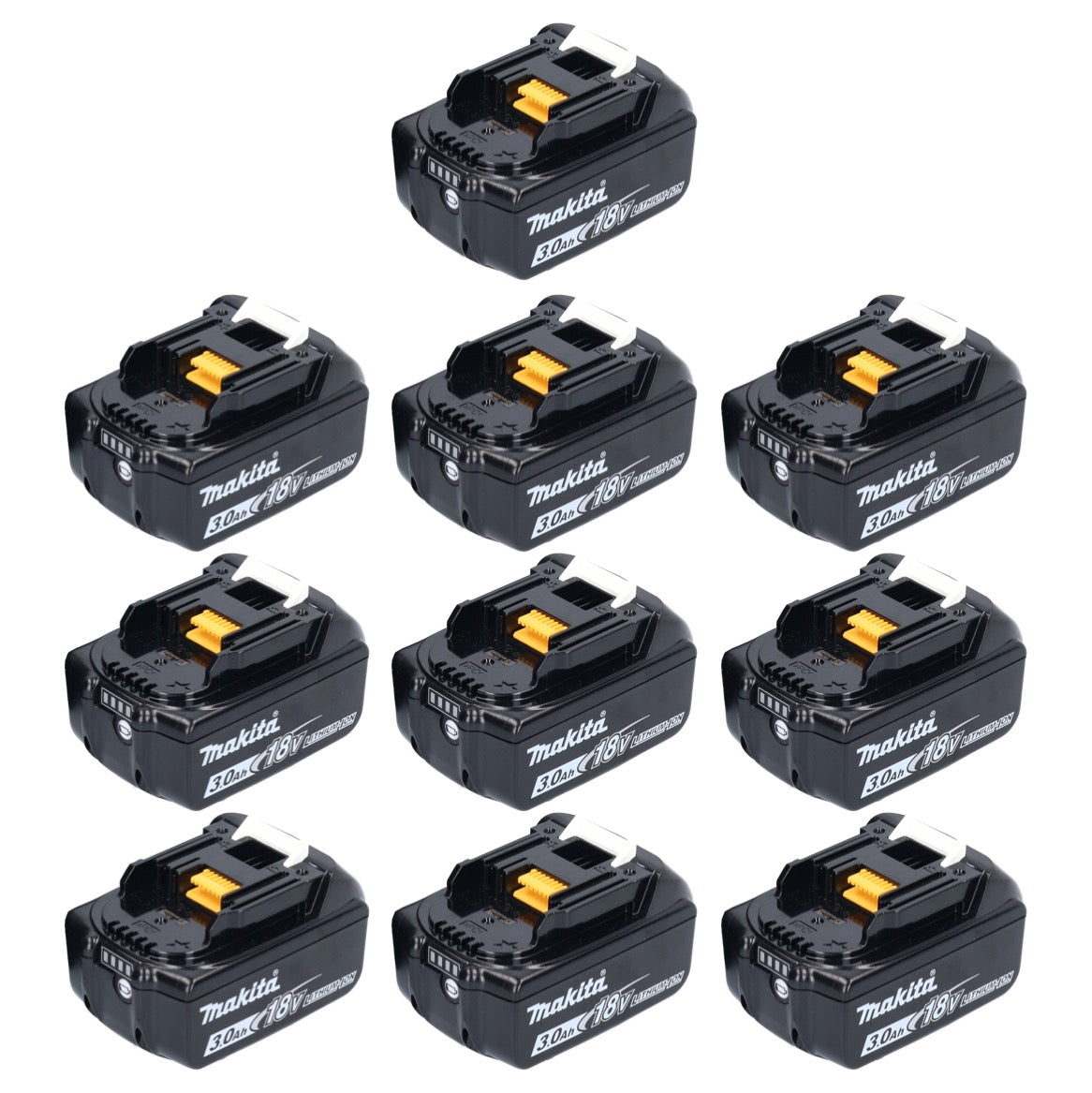 Makita Akku Set 10x BL 1830 B 18 V 3,0 Ah / 3000 mAh Li-Ion ( 10x 197599-5 ) mit LED Anzeige - original, kein Nachbau