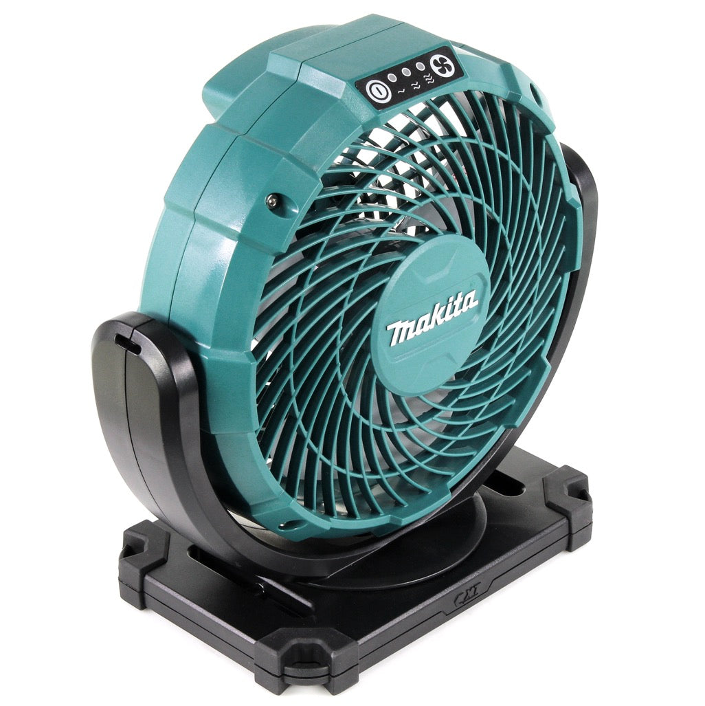 Der Makita Lüfter CF 100 hat eine maximale Luftgeschwindigkeit von 180 m/s. Diese ist in 3 Stufen regelbar. Der Ventilator ist nach unten 45°und nach oben 90° neigbar. Er schwenkt automatisch 90° rechts bis 90° links. Zudem ist er mit Akkus oder auch mit Netzteil zu betreiben. Der Lüfter bietet zusätzlichen Komfort bei heißem Wetter und beschleunigt das Trocknen von Farbe oder Spachtelmasse.